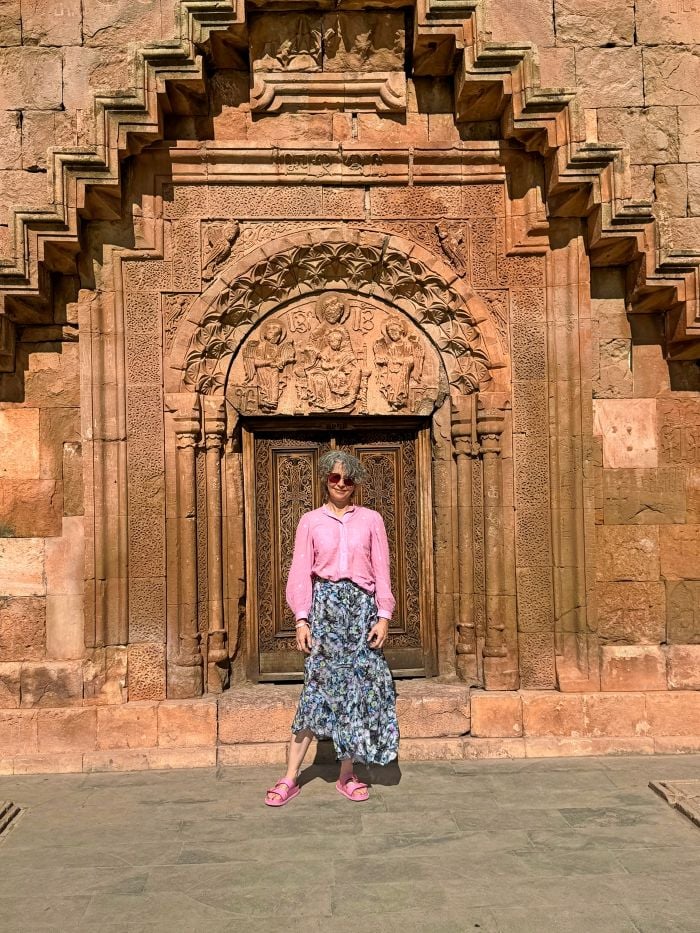 Ну и конечно, настоящая гордость Армении — её древние монастыри. В Грузии меня поразили церкви и монастырские комплексы с башенками, похожими на ведьмины шляпы, и остатками фресок, которые чудом уцелели после попыток советской власти их уничтожить. Но армянские храмы — это совсем другое измерение. Здесь почти нет росписей — вместо них повсюду резные каменные кресты — хачкары. Считается, что пышная живопись отвлекает от молитвы, а камень — вечен. Эти кресты покрывают стены изнутри и снаружи, одни вырезаны веками назад, другие — как будто нацарапаны позже, рядами, как духовный вариант «палочек» на стене.