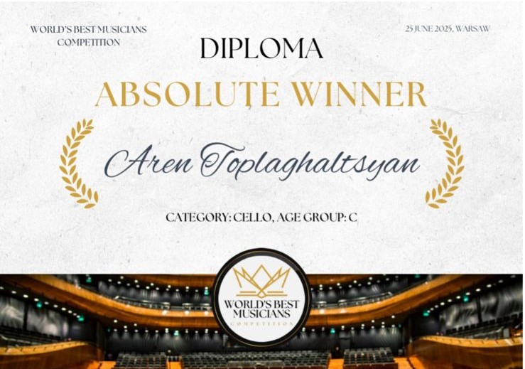 КУЛЬТУРАДля виолончелиста Арена Топлагалцяна, стипендиата фонда «Музыка во имя будущего», июнь, похоже, стал временем сбора международных наград. В этом месяце ему удалось принять участие в международном конкурсе «International Youth Music Competitions» и выиграть Гран-При. «International Youth Music Competitions» предоставляет музыкантам платформу. Конкурс фокусируется на всех музыкальных стилях и инструментах.