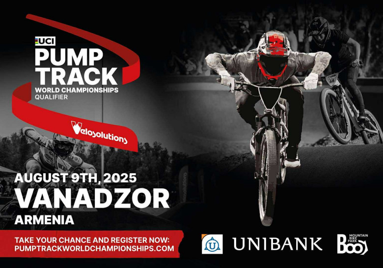 ОБЩЕСТВОВпервые в Армении пройдет квалификационный этап чемпионата мира Velosolutions UCI Pump Track. Турнир организован Международным союзом велосипедистов (UCI) совместно с компанией Velosolutions. Генеральным спонсором мероприятия в Армении выступает Юнибанк.