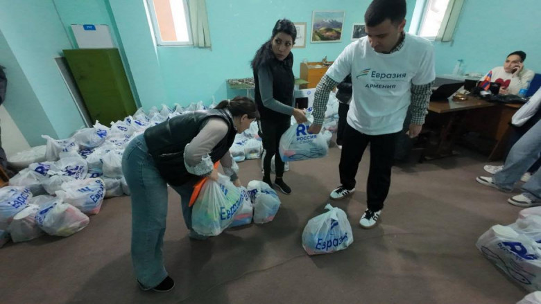 ОБЩЕСТВОВ Армавире стартовал новый этап гуманитарной инициативы, реализуемой «Евразия» ИՀԿ совместно с Русской Гуманитарной Миссией и Россотрудничеством в рамках проекта «Россия с вами». С самого утра здесь кипит работа: волонтёры встречают семьи, проверяют данные и помогают каждому получить набор продуктов и товаров первой необходимости.