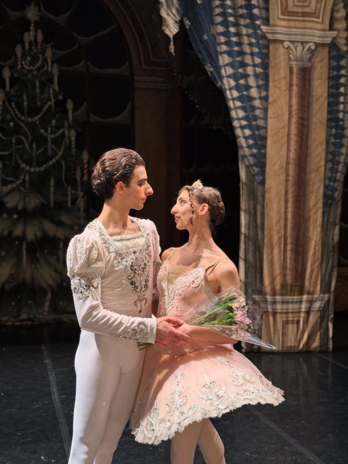 ФОТОНаверняка вы видели этот романтичный рилс, набравший миллионы просмотров: финал «Лебединого озера» в Театре оперы и балета имени Александра Спендиаряна, поклоны, овации - и вдруг солист балета опускается на одно колено прямо на сцене, делая предложение руки и сердца своей партнёрше.